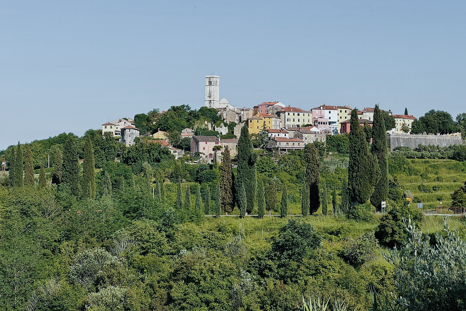 Ko sva lanskega februarja odvozila prvih štirideset kilometrov iz Milj do Sečovelj, sem imela le eno željo: da naslednji odsek prekolesariva, ko bo vsaj dvajset stopinj nad ničlo, brez burje in sončno. Tak dan je bil za Primorsko napovedan preteklo soboto in v Sečovljah sva avto zaklenila nekaj čez pol deveto zjutraj. Nisva ravno hitela, a sva vseeno želela začeti zgodaj, še preden je poznopomladansko sonce dodobra razgrelo rdečo istrsko zemljo. Bilo je čudovito jutro in takoj ko sva na mejnem prehodu Plovanija odvila z glavne ceste, sva se z navdušenjem pognala v hrib.