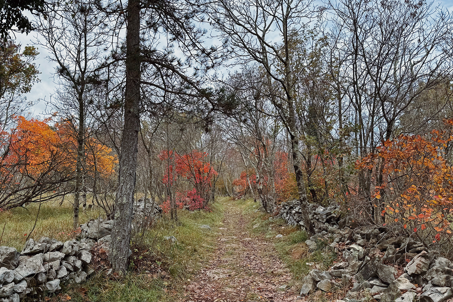 Nazadnje sva se po Krasu potepala spomladi, na tisto nedeljo, ko smo kazalce prestavili za eno uro naprej. Štartala sva pozno in imela sem občutek, kot da nama bo zmanjkalo dneva. Minuli vikend je bilo ravno obratno: ura se je prestavila nazaj, od doma sva se odpravila zgodaj in zdelo se je, kot da imava ves čas na svetu. Ni se nama mudilo, a sva od Logatca do Ajdovščine in od Branika do Komna vseeno prišla s svetlobno hitrostjo. Tam sva zavila proti jugovzhodu, nato pa na robu Pliskovice, na makadamskem parkirišču, v vogal katerega je umeščena tudi izposojevalnica koles, pustila avto.