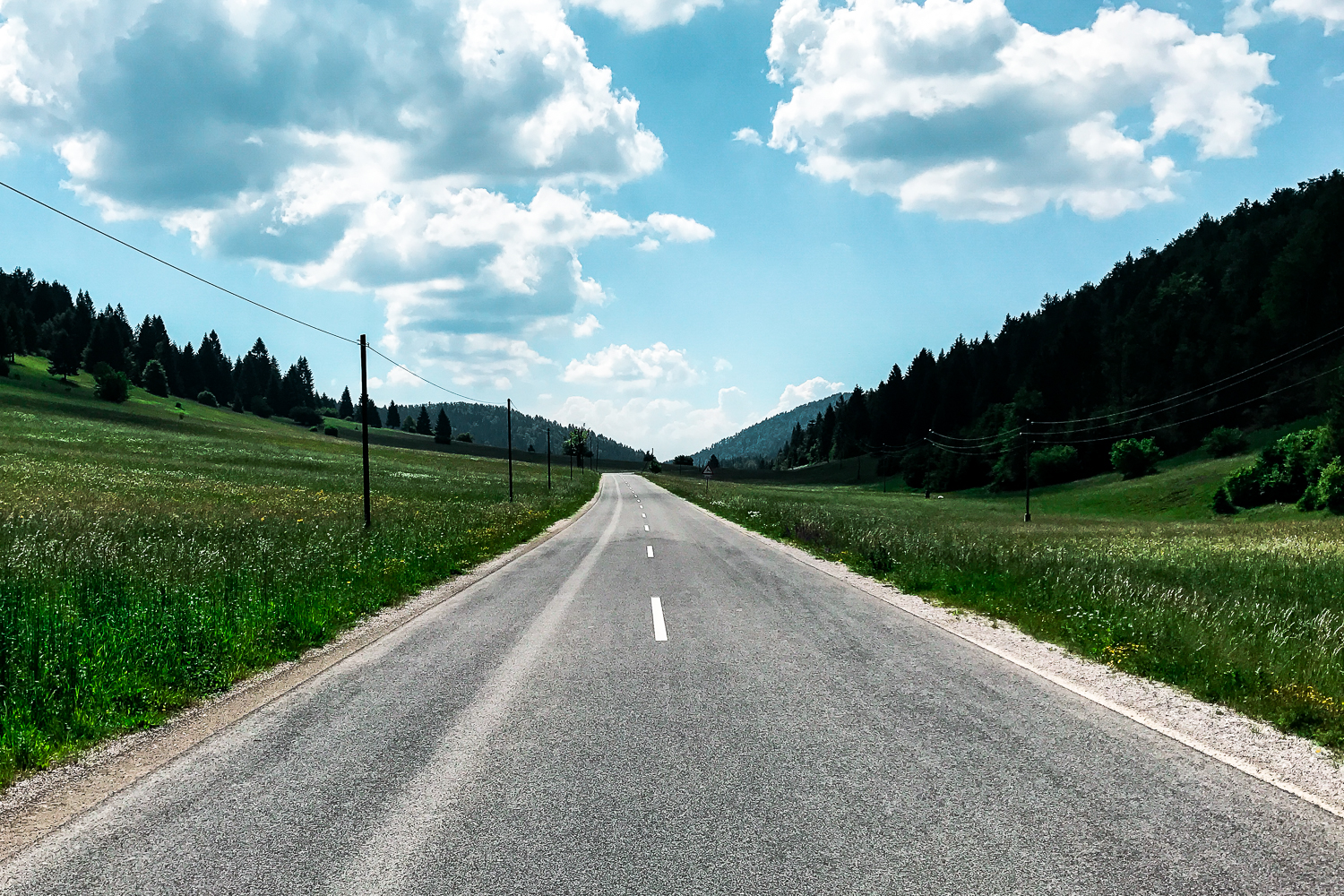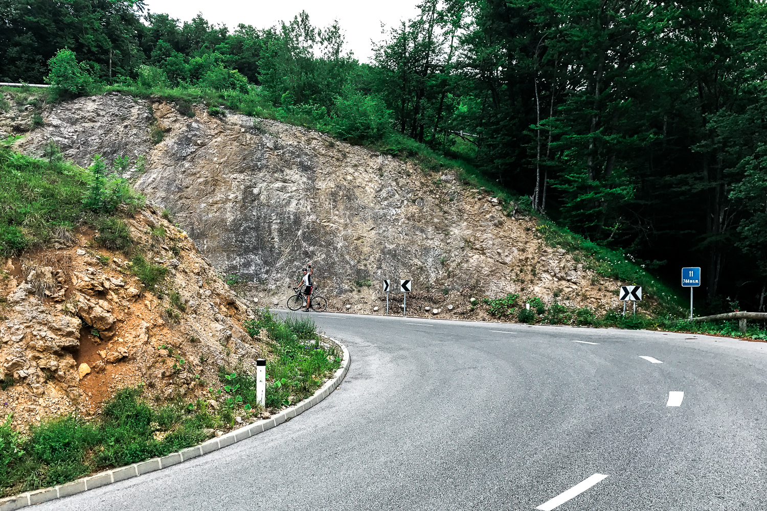 Takoj zjutraj sva s Tomažem krenila proti izhodišču v Sodražici, da bi še ujela jutranjo svežino. Ta je bila nujna, saj naju je hitro pozdravil prvi večji vzpon, ki naju je popeljal na vrh Loškega Potoka. Prometa skora ni bilo. V kraju Hrib-Loški Potok naju je oviral traktor, ki je prevažal lesene hlode. Istočasno sva bila z nesramno gesto opozorjena s strani zagrizenega kolesarja, ki je prav tako vozil za omenjenim traktorjem, češ kaj se greva, da ima on prednost pred nama in da bo prehitel traktor. Nekoliko kasneje oz. pri naslednjem spustu sva prehitela njega in traktor. Splačalo se je biti potrpežljiv. Po planoti sva nadaljevala več ali manj po ravnem, vse do spusta proti Čabarju. Peljala sva se skozi skoraj popolnoma zapuščeno pokrajino. Levo in desno so naju obdajali gozdovi in travniki. Nikjer nobene žive duše. Sem in tja naju je cesta vodila skozi kakšno zaspano vasico. Cesta, ki se spušča v dolino reke Čabranke je sicer ozka, a nič manj zabavna. Navzdol gre vse do mejnega prehoda Čabar, kjer naju je na dveh odsekih presenetilo delo na cesti. Specialka in grob makadam nista dobra kombinacija, pa nama je vseeno uspelo elegantno in brez večjih spodrsljajev priti na drugo stran. Oba obmejna policista sta bila izjemno prijazna. Bila sta policistka in policist, vsak po svoje navdušen nad najino vnemo. Ob reki Čabranki sva pot nadaljevala po hrvaški strani vse do Osilnice. Na poti sva se v Pleščcah ustavila na kavi v gostilni polni domačinov, ki so govorili malo hrvaško, malo slovensko in kjer je kava z mlekom stala le sedemdeset centov. Pravzaprav sva sedemdeset centov plačala za dve kavi, vendar je to enostavna morala biti pomota. Ali pač.