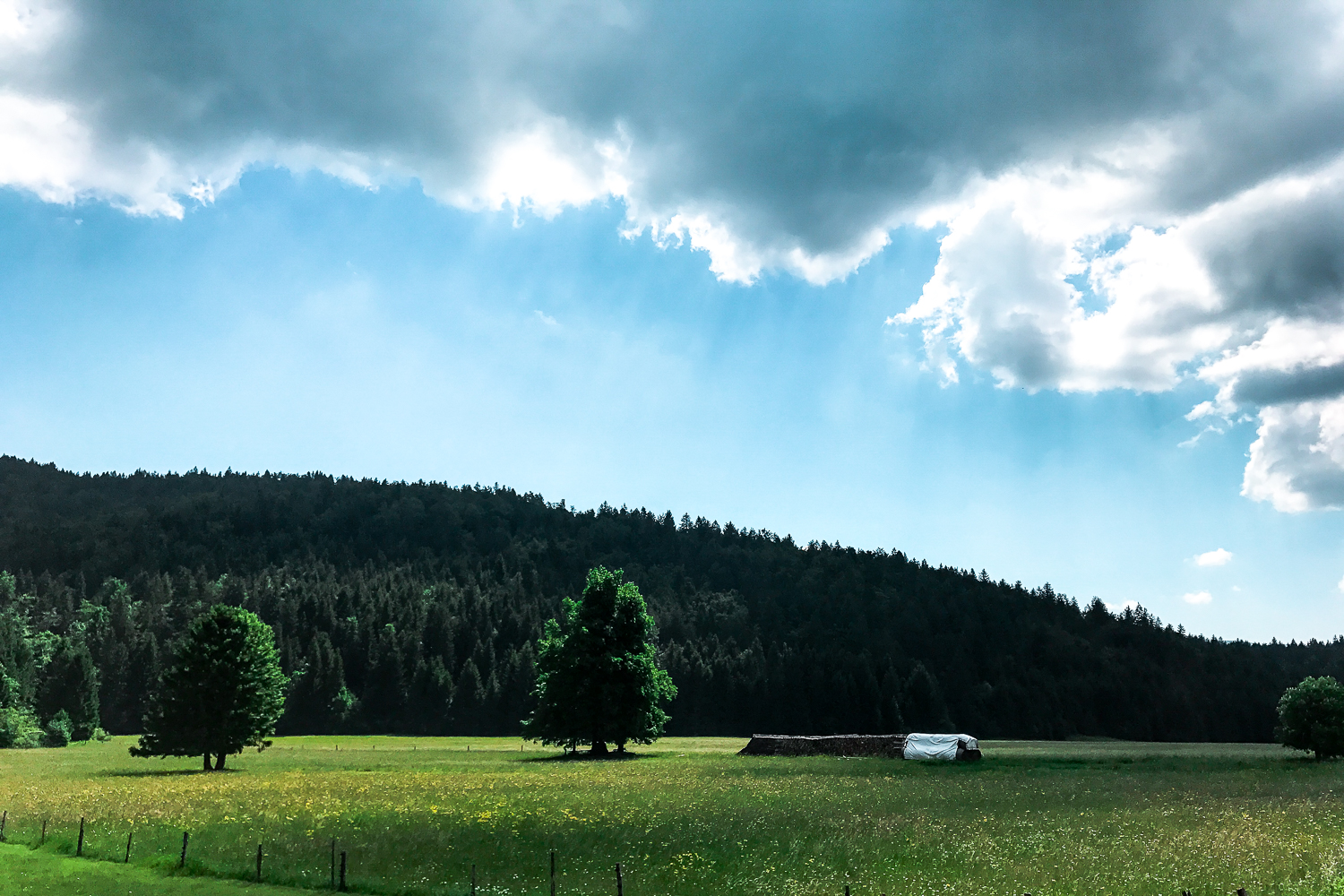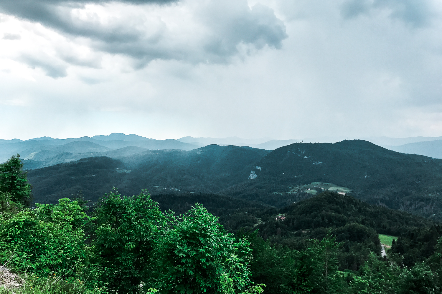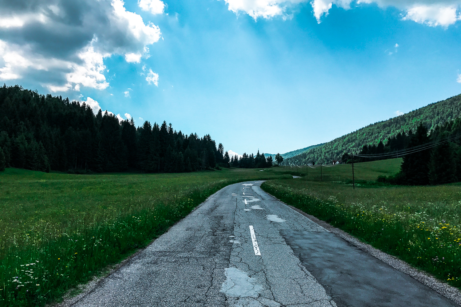 Sledil je spust na drugo stran proti Kočevski Reki, od tu naprej pa se je cesta ves čas dvigala in spuščala skozi gozdove. Pravijo, da na tem odseku lahko vidiš celo kakšnega volka. Če imaš srečo, seveda. Za trenutek naju je celo malo namočilo, kar je bila prijetna in celo dobrodošla osvežitev. Peljala sva se tudi skozi Gotenico, znano po nekdaj najbolj varovanem vojaškem območju in zaklonišču v Sloveniji. Na zunaj je delovala kot peščica zapuščenih hiš.