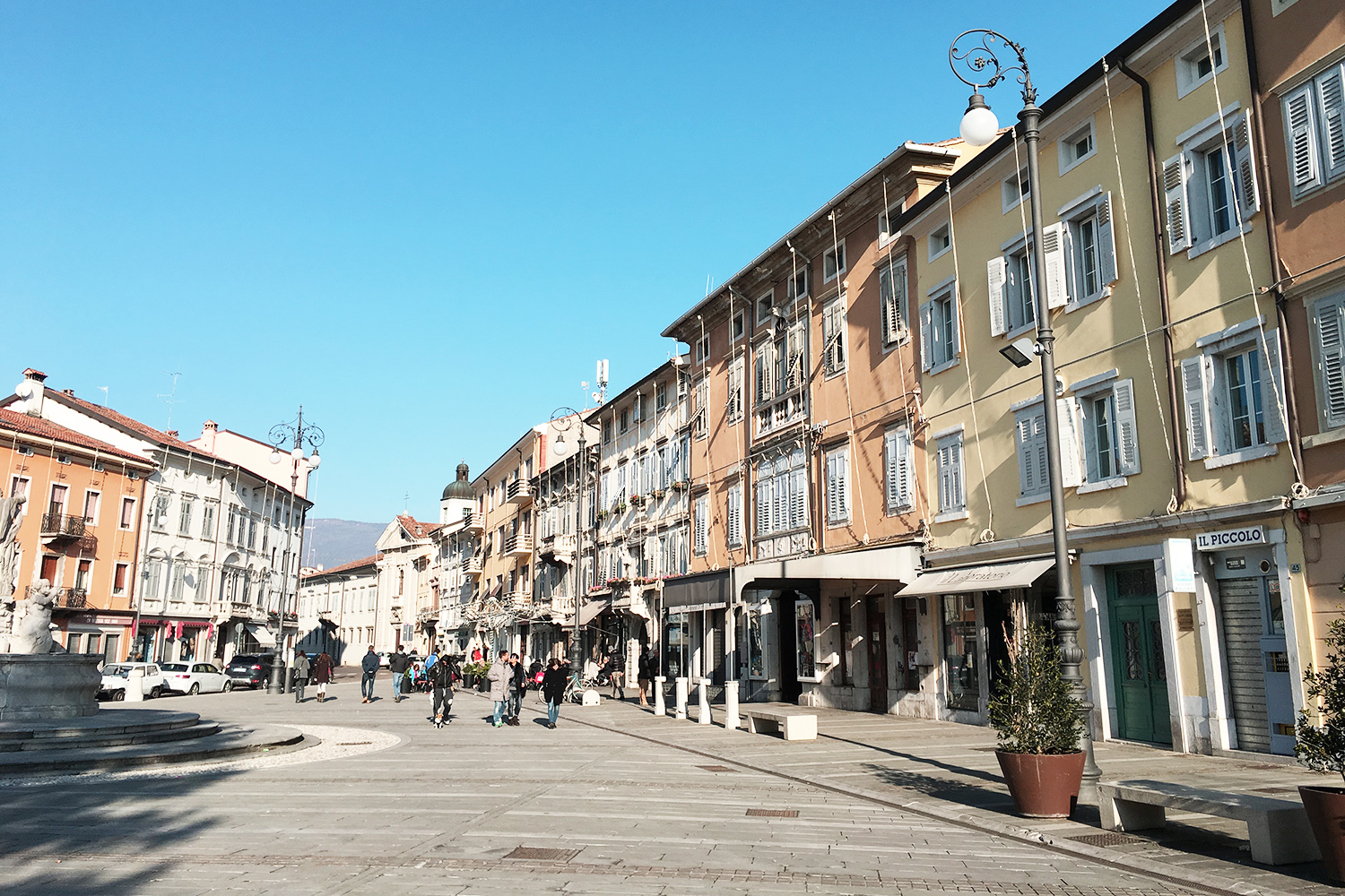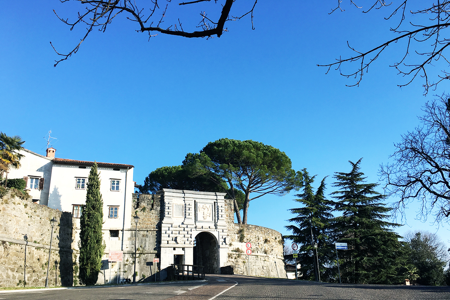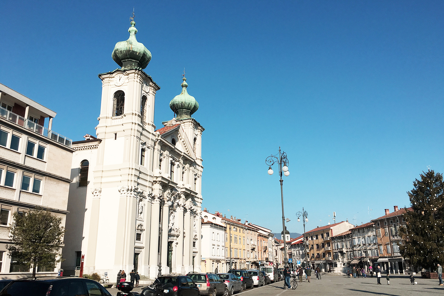 Zaradi praznikov je bila večina trgovin in lokalov zaprtih, a naju to ni motilo. Sprehodila sva se čez Piazza della Vittoria, glavni trg s tunelom proti slovenski strani, na katerem imajo pozimi postavljeno drsališče. Mahnila sva jo po praznih ulicah in opazovala praznično okrašene izložbe. Majčkeno žal nama je bilo žal le za pokrito tržnico in vrvež, ki jo sicer obdaja. Nato sva se povzpela na grajski hrib. Iskreno rečeno se do tistega trenutka, ko sva stopila za grajsko obzidje, nisem zavedala, da ima Gorica tako lepo ohranjen grad. Proti nizkem plačilu sva naredila krožno turo po graščini in bila iskreno navdušena. Pozno popoldan sva na Corso Italia, mondeni mestni ulici z drevoredom, spila vročo čokolado.