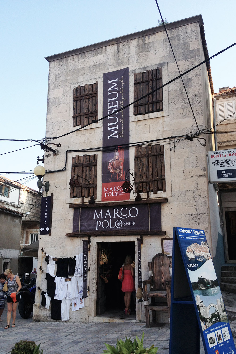 Poleg bojda ene najlepših cerkva v Dalmaciji, slavne katedrale sv. Marka, smo si ogledale največjo znamenitost Korčule – hišo, v kateri naj bi v trinajstem stoletju živel sam Marko Polo. Povzpele smo se na zvonik, z obzidja opazovale jadrnice v marini in nasploh počele skoraj vse, kar se na Korčuli pač počne. Zaradi močnega navala turistov in hudo visoke vstopnine smo izpustile le Moreško, tradicionalno viteško igro, ki jo v odprtem gledališču prirejajo vsako poletje. Malo smo tudi zapravljale, večinoma za jedačo. Ker ji je starega odpihnil prijetno sveži maestral, si je bila mami primorana kupiti nov slamnik, za zraven pa v Borovem še sandale s polno peto. V isti trgovini sem si sama kupila mornarske Startasice, Kristina pa se je prav potiho najedala z brezplačnimi bonboni. Teden je minil kot bi mignil.