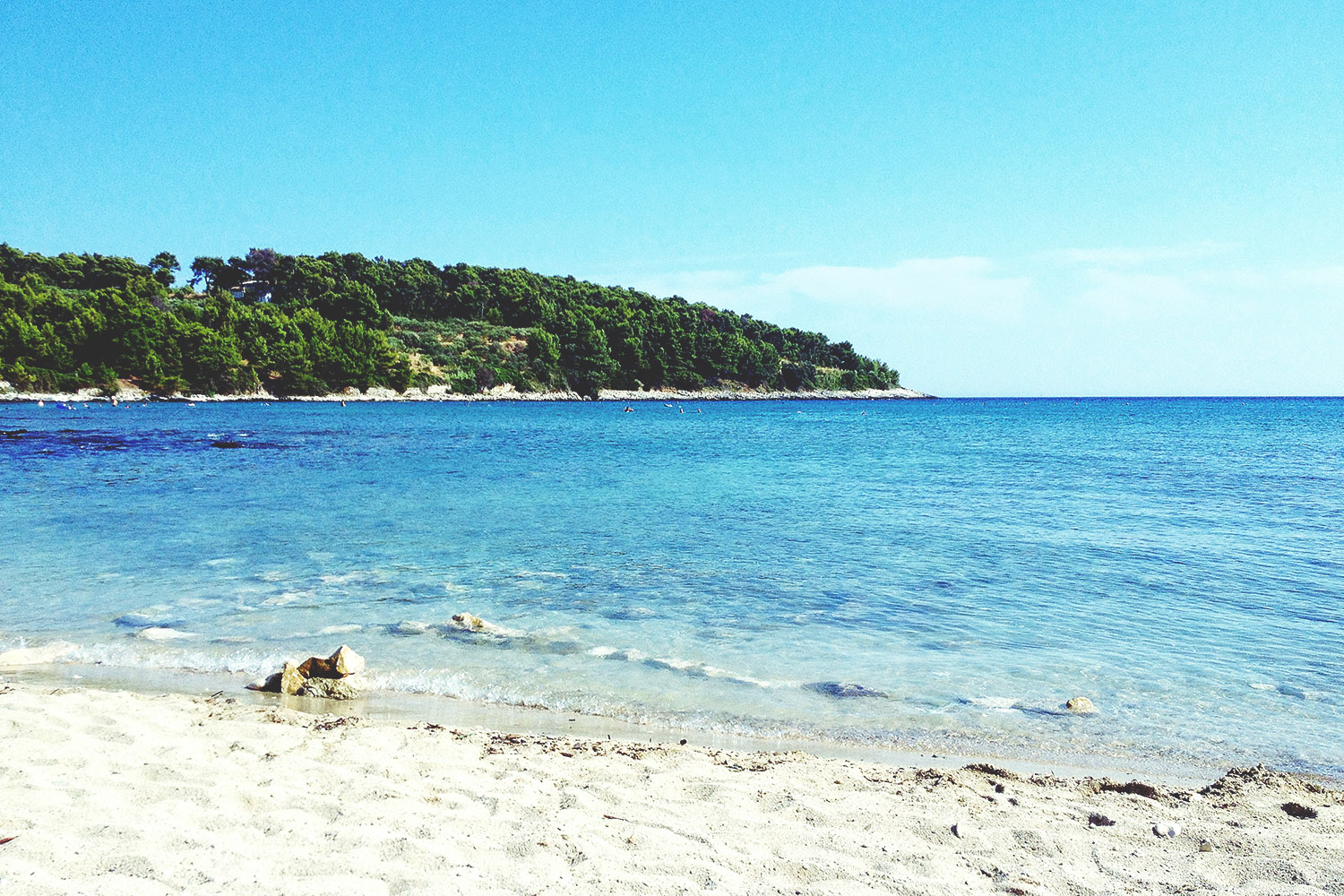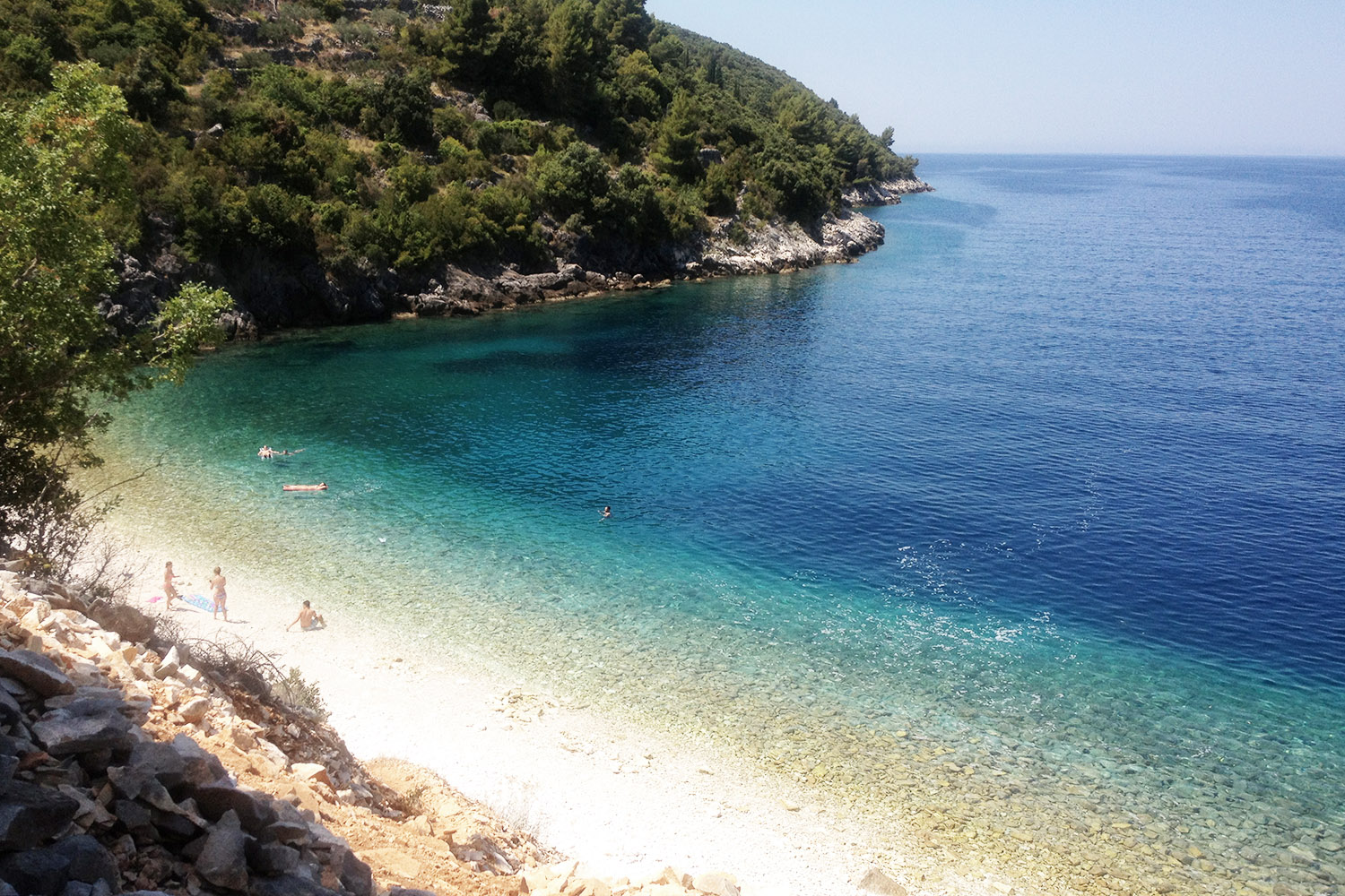 Pa nismo. Na obhod je bilo treba še isti večer, naslednji dan pa najmanj na dve plaži. Dejstvo, da smo bile na otoku brez avtomobila, nas ni prav nič oviralo. Javni avtobusni promet nas je prepeljal v vsa večja mesta na otoku, do talepših plaž pa smo pač malo popešačile. Če se nam to ni ljubilo, smo doma le popokale vsaka svojo brisačo in se za obzidjem okopale v kristalno čisti vodi. Enkrat smo se na celino, v mesto Orebić, zapeljale s trajektom, spet drugič nas je prijazni domačin s čolnom transportiral na otoček Badija, kjer nas je tistega dne dodobra prijelo sonce. Nismo bile edine, ki smo po otoku potovale z busom, javnega transporta so se posluževali številni nemški in nizozemski turisti, na enem od takšnih izletov v neznano smo spoznale mlado družinico iz Nemčije, katere glavni član je bilo majhno dekletce, ki je ravno dobro začelo govoriti, njen besedni zaklad tistega dne (in verjetno tudi celotnega dopusta) pa se je vrtel okrog dveh besed: korsula, korsula!