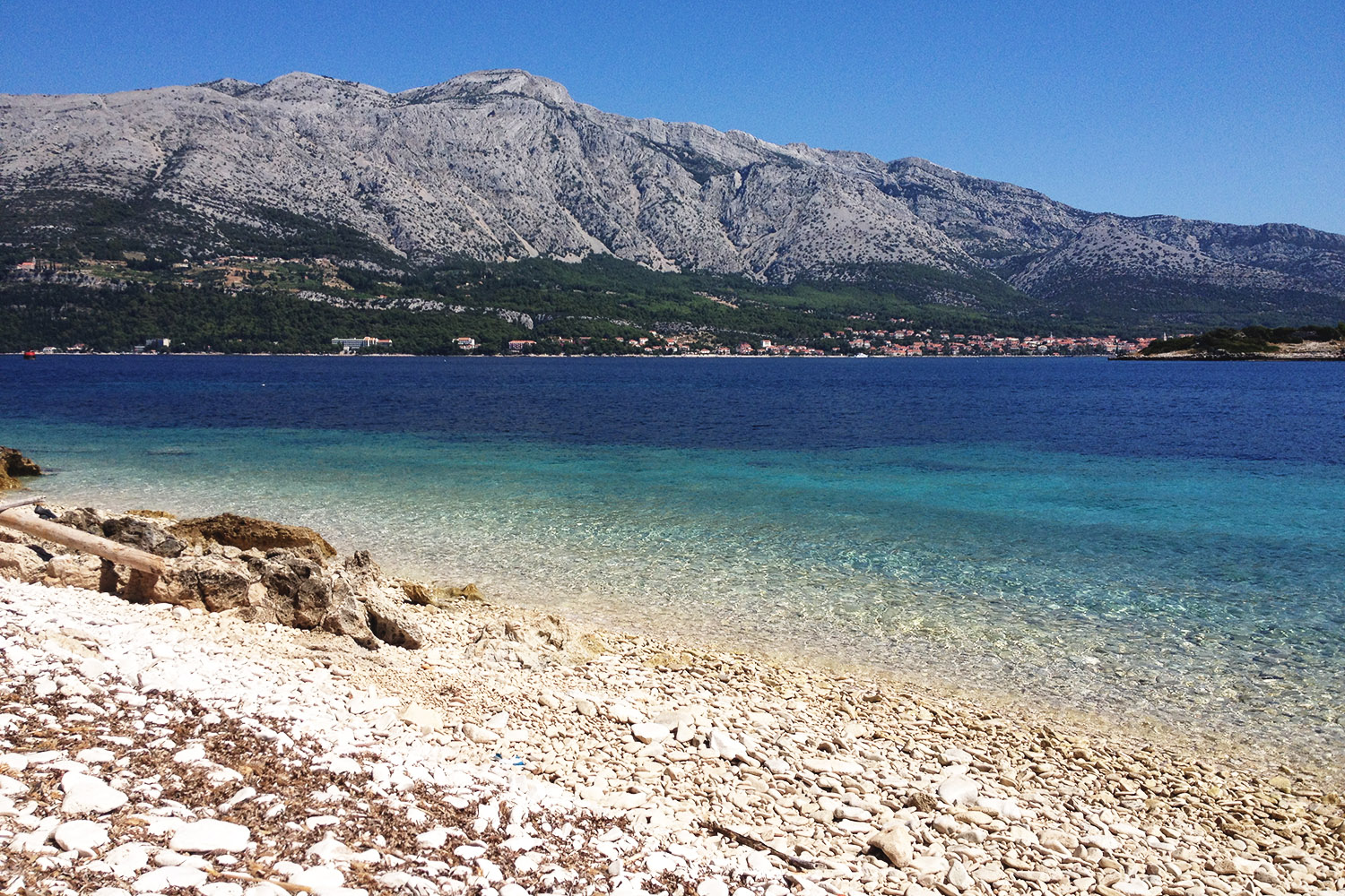 Mami je bila že od kar pomnim zaljubljena v Dalmacijo. V dalmatinsko glasbo in njen melos, v odmev dalmatinskih klap na ozkih ulicah romantičnih obalnih mest. In ko smo se tiste vroče sobote spuščali na splitsko letališče (tisto leto je bil dopust pač sila graciozen), je že mencala od navdušenja. V Splitu smo se vkrcale na trajekt za Korčulo, v Veli Luki pa na avtobus za mestece Korčula čisto na drugi strani otoka. Avtobus je suvereno polagal ovinke in občasno ustavil v kakšnem manjšem kraju ob cesti. Mimo nas so švigala polja, borovi gozdički in vinogradi, tu in tam pa smo v daljavi za trenutek že ugledali kakšno rajsko uvalo.