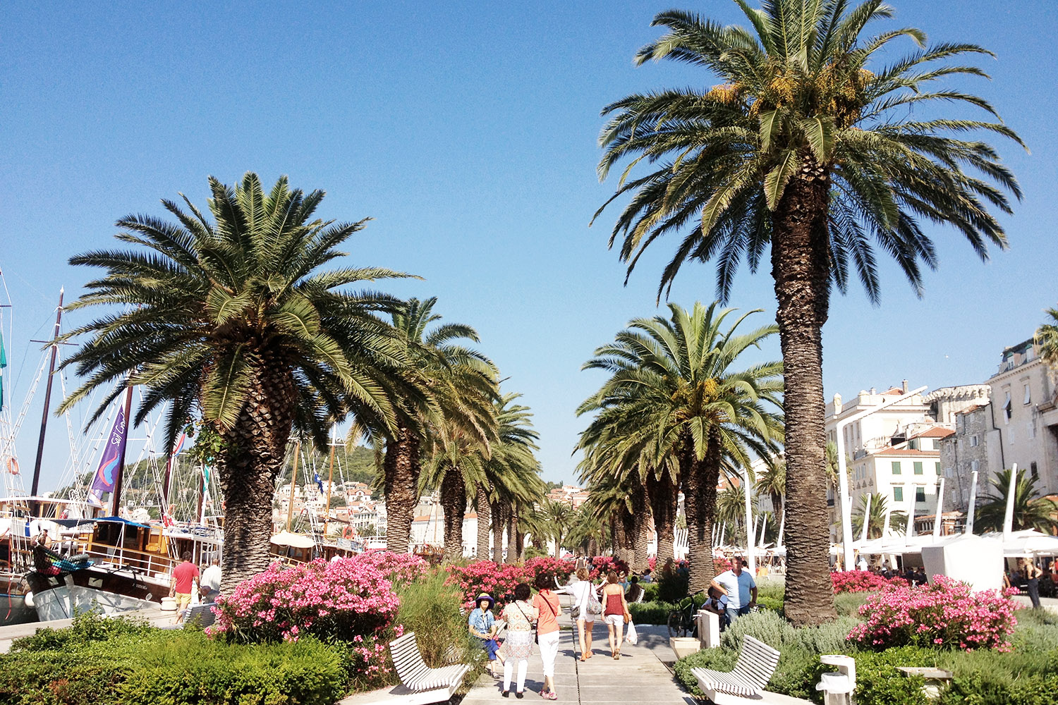 Katamaran, s katerim smo se peljale nazaj proti Splitu, nas je veliko prehitro odtujil od malega mesta na najlepšem dalmatinskem otoku in že po prvih nekaj miljah nam je bilo vsem kar malo težko, da se počitnice zaključujejo. V Splitu smo imele dovolj časa za mirno kosilo, rundo dalmatinskih pesmi in sprehod skozi bolšjak starin, a nam je nato kljub temu uspelo zamuditi avtobus do letališča. Ko smo kakšno uro zatem sebe in prtljago končno privlekle do okenca za check-in pa se nam je strgal še eden od kovčkov in izgledalo je, kot da tri gracije na noben način ne želijo zapustiti Dalmacije…