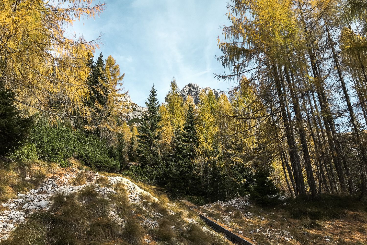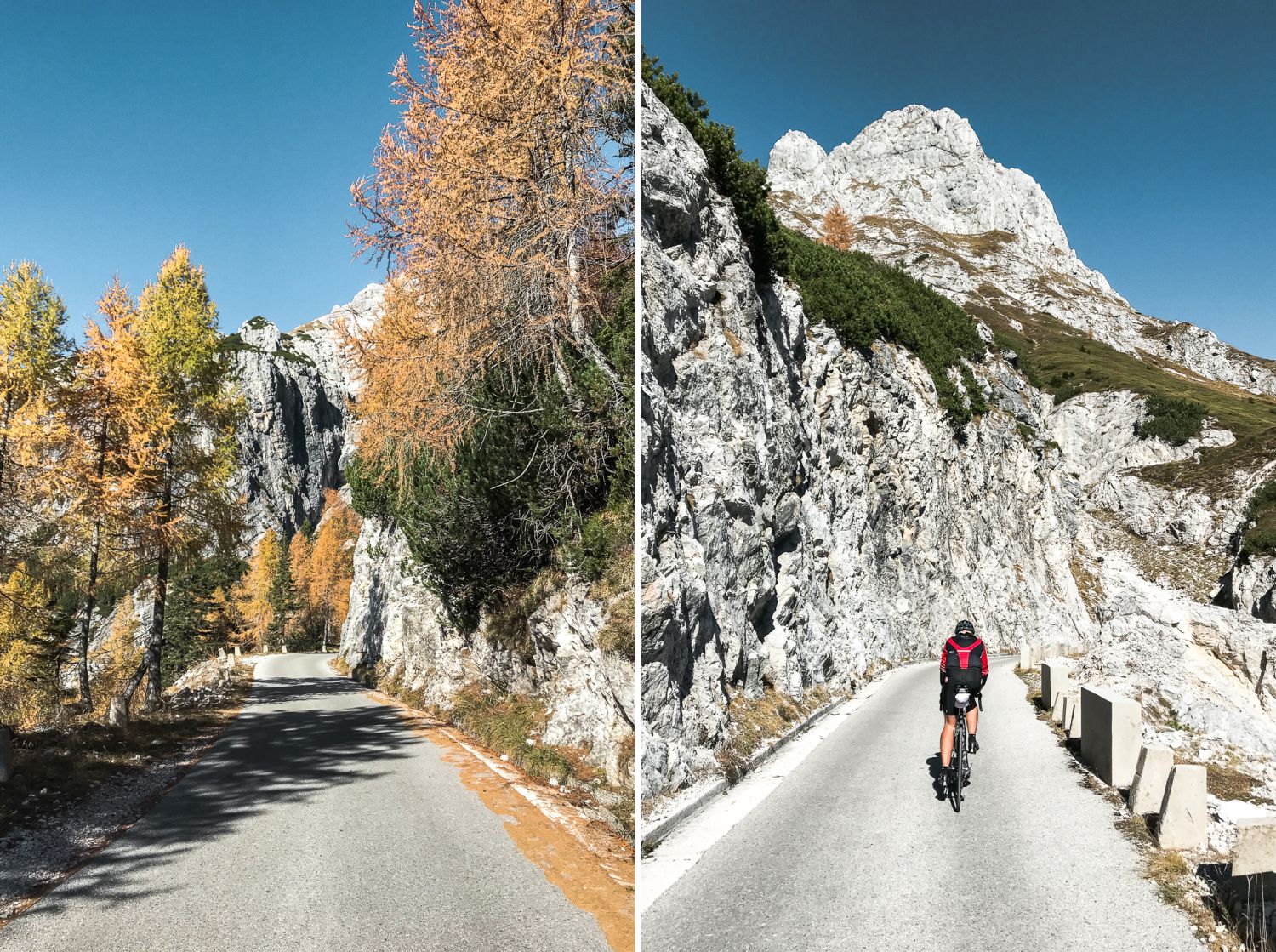 Od takrat sem bil na sedlu že tolikokrat, da lahko z zanesljivostjo povem, kdaj je najlepši čas za vzpon. Zame je to jeseni, ko gozd na spodnjem delu dobesedno žari v oranžnih in rumenih barvah macesnov. Na vrhu je zaradi inverzije prijetnih 25°C, medtem ko je spodaj na začetku ceste 15°C, tako da nase še ni potrebno navleči polne zimske uniforme. Še en razlog, zakaj mi je najbolj všeč jeseni je dejstvo, da ni nobenega prometa. Avtomobilov praktično ni. Do vrha se zapeljejo zgolj tisti, ki grejo hodit ali plezat na sosednje vrhove. Mangart, na primer. Kadar sem imel srečo, sem na poti ujel čredo drobnice ali koz, ki na sedlo hodijo na pašo. Še dobro, da sem bil s kolesom in sem se lahko pritihotapil do njih, tako da niso zbežale takoj ko so me zagledale.