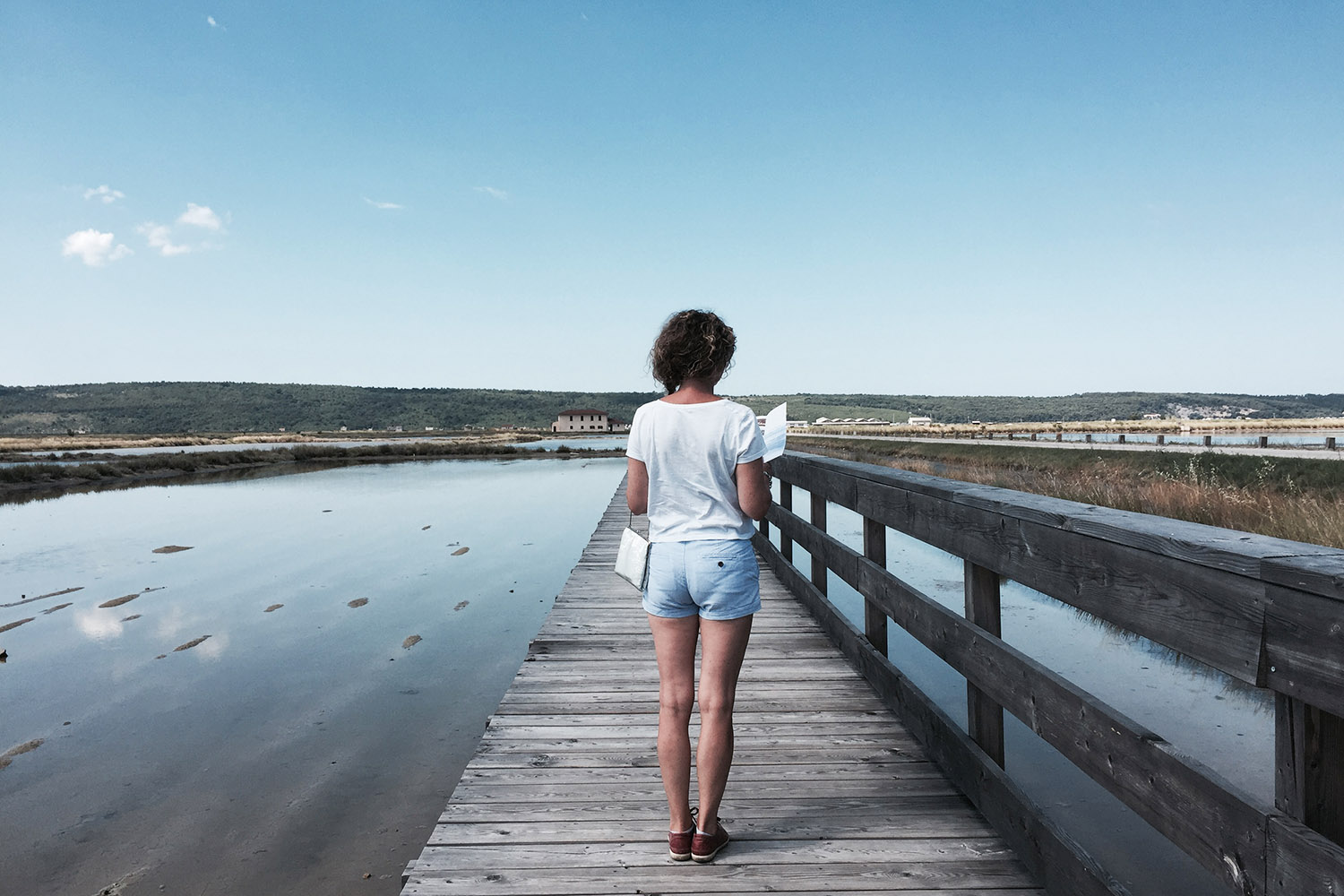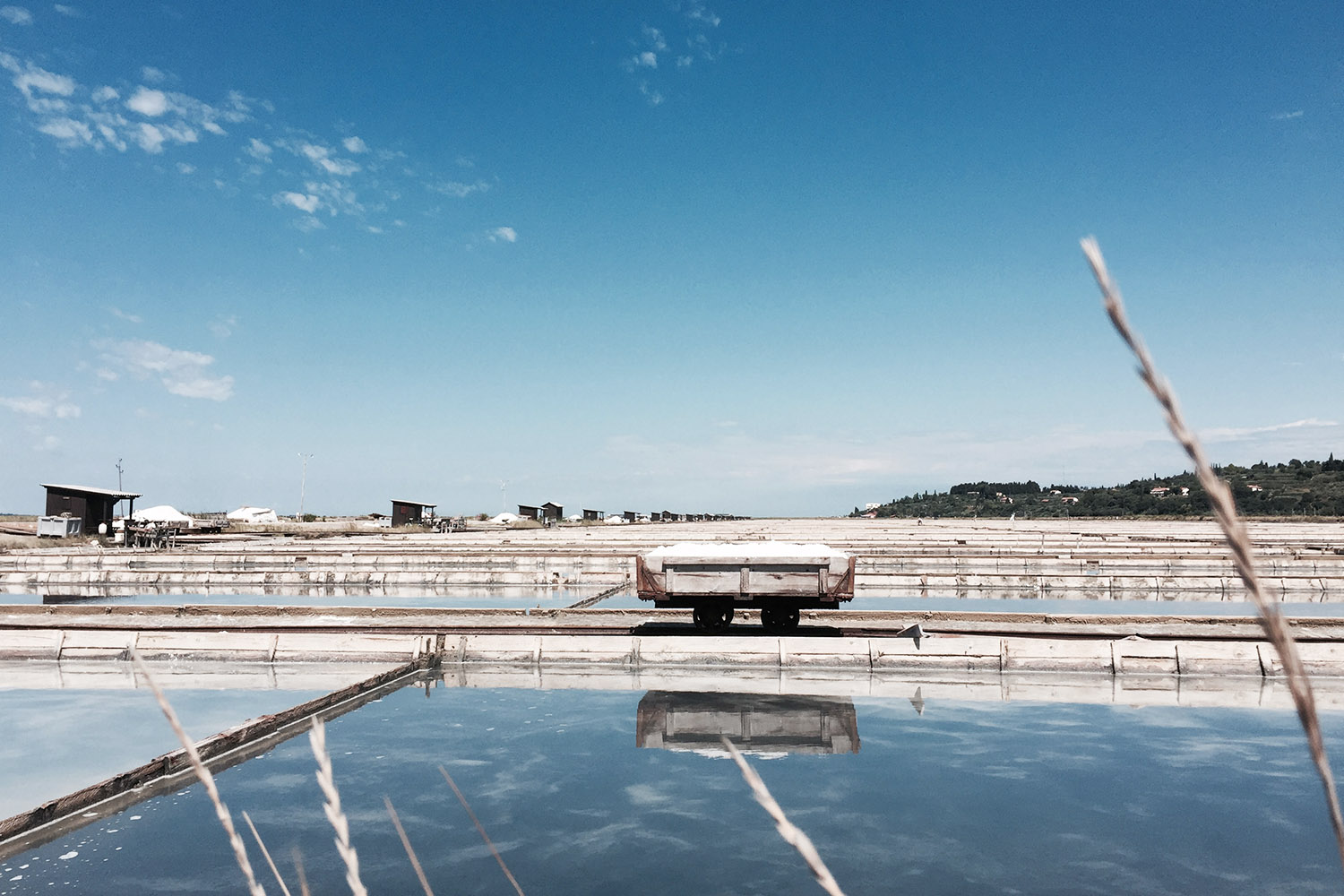 Misija jutranje plavanje uspela: v morju, ki ima že cel teden sumljivih sedemindvajset stopinj se naplavava že pred sedmo in ob osmih zajtrkujeva. Danes je dan za izlet na Sečoveljske soline. Izkusiva tisto pravo solinarsko vročino in se pri štiriintridesetih stopinjah sprehajava med bazenčki soli na Leri, severnem delu solin. Kupiva sol. Nato obiščeva simpatično gospo, ki ima v Seči vrt kaktusov. Izmenjamo nekaj modrosti in v zamenjavo za drobiž s seboj odneseva vrečko trnatih rastlin. Kolesarjenje po Fontaniggeah, južnem delu solin, ki ga od Lere ločuje kanal Grande, ter obisk Muzeja solinarstva vsled hude vročine in odsotnosti osebnih dokumentov, potrebnih za (četudi le nekajmetrski) prestop meje, odloživa na pozno popoldne. Z v ta namen najetim kolesom jih prekolesariva po dolgem in počez, se čisto na koncu, tam kjer se Dragonja izliva v morje, nastavljava večernim žarkom in se muzava ob drobnih polojnikih na dolgih, tankih nožicah, ki capljajo po plitvi vodi. Zvečer v Izoli pijeva vino, pokušava Izolanko in klepetava z gospodom v fluorescentnih hlačah.