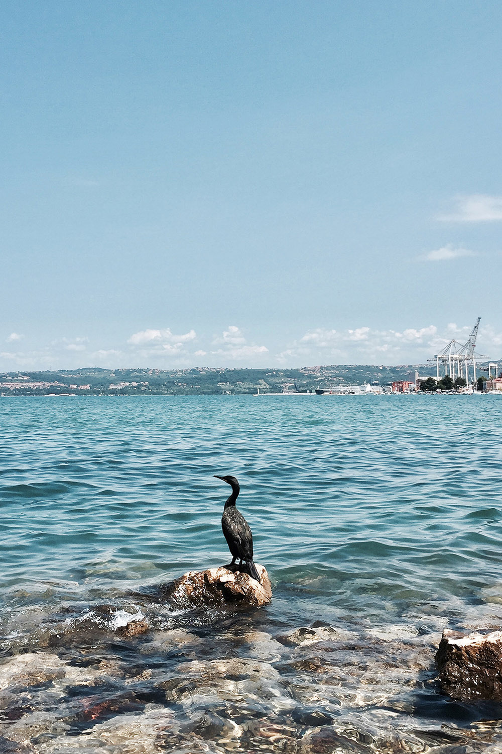 Zjutraj nebo nad morjem prekrijejo nevihtni oblaki. Nališpava se, se zatahmašno oblečeva in nedolgo zatem v Piranu, pod velikim dežnikom in s pogledom na razburkano morje srkava penasto kavo. Nato do potankosti prekrižariva mesto, da moram v drogeriji obnoviti zalogo obližev. Z obzidja opazujeva izganjajočo nevihto in ko sva spet pri Tartiniju, pred Benečanko, ki je nedolgo tega zamenjala barvo, že sije sonce. Galerijo pametnega telefona napolniva s pretežno portretnimi fotografijami. Kopava se v Strunjanu, kjer popoldan prespiva pod dišečimi borovci. Morje ima danes le kakšnih vznemirljivih petindvajset stopinj. To je najin zadnji dan, a večer vseeno preživiva doma: izprazniva hladilnik in spijeva vino.