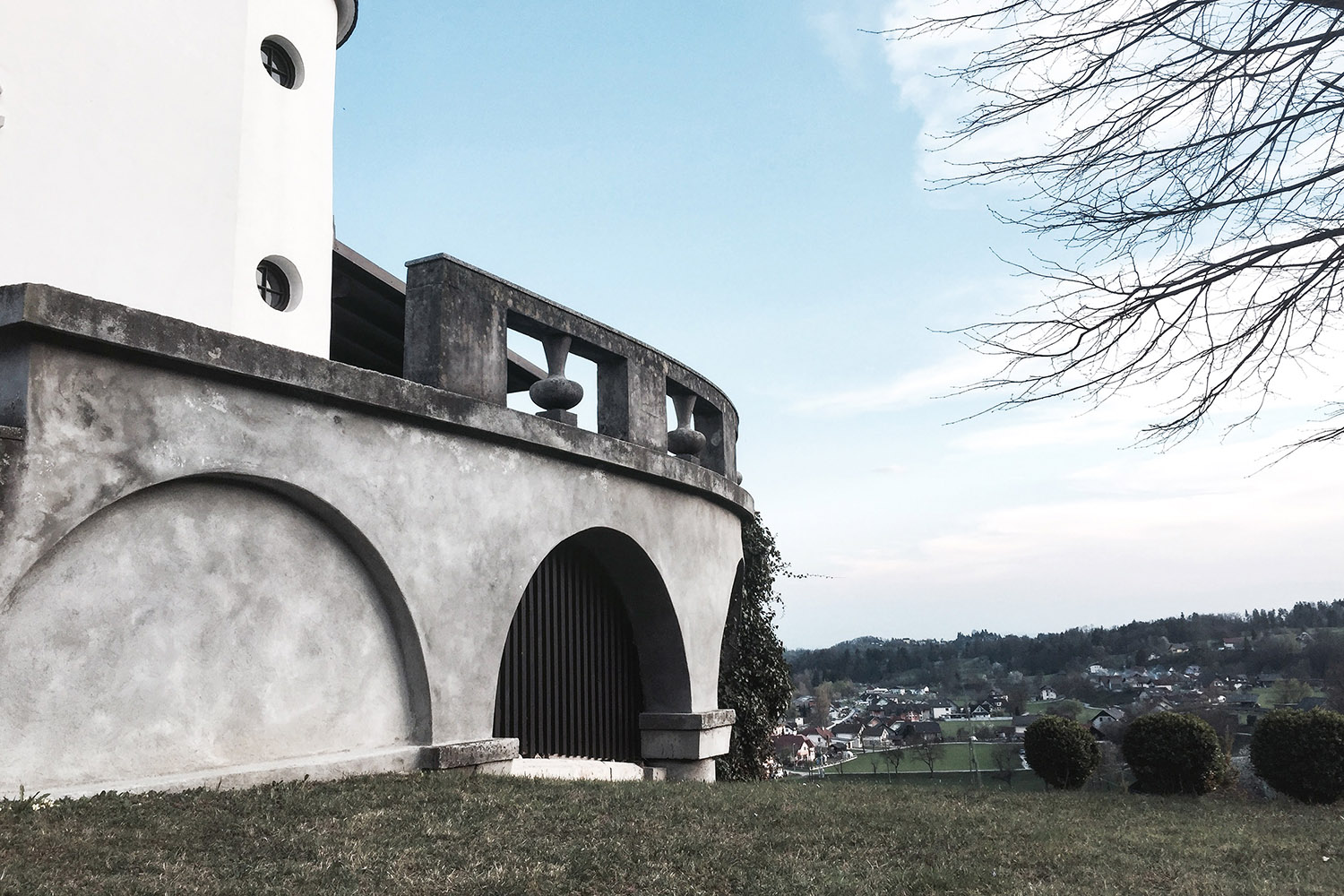 Kamnik z okolico je posejan s Plečnikovimi deli. Ena bolj znanih, muzej Plečnikove umetne obrti, kot jo je imenoval France Stele, je cerkev sv. Benedikta v Zgornjih Stranjah. Plečnik je pri prenovi cerkvi dogradil zunanjo lopo, uredil glavni vhod in dostop na zvonik, posebno pozornost pa je namenil notranji opremi, ki naj bi bila zavoljo sodelovanja z lokalnimi mojstri sploh nekaj posebnega. Na žalost je cerkev ob poznih nedeljskih popoldnevih za radovedno javnost zaprta, zato se bom morala za kakšen notranji detajl tja vrniti andrukat, pardon, drugbrt.