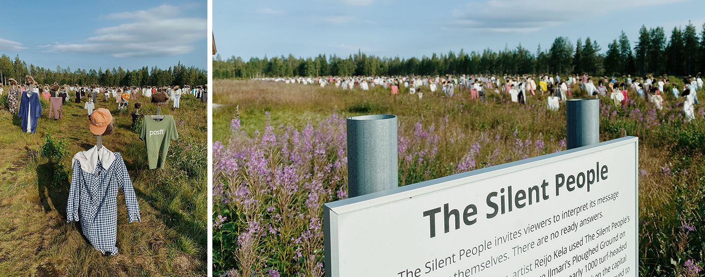 Zanjo sva izvedela v eni od epizod dokumentarne serije Evropa od zgoraj in ker je se nama je zdela tako zelo posebna in sva ravno takrat načrtovala potovanje po Finski, jo je Mr. P. takoj dodal na seznam obveznih postankov. Do travnika, ki leži tik ob glavni cesti, sva prišla pozno popoldan, ob uri ko je neme podobe ljudi, sestavljene iz lesenih križev in podarjenih oblačil, kosa zemlje namesto glave in trave namesto las, od spredaj osvetljevalo popoldansko sonce. Ujela sva jih v njihovih poletnih opravah – prostovoljci iz lokalne skupnosti jih namreč dvakrat na leto preoblečejo v letnem času primerna oblačila. Travnik je bil obrnjen na zahod in dejstvo, da so skulpture zrle v (počasi izginjajočo) svetlobo, se mi je nenadoma zazdelo sila simbolično. Po svoje sem imela prav: avtorica razstave je namreč mnenja, da je sporočilo projekta stvar lastne interpretacije.