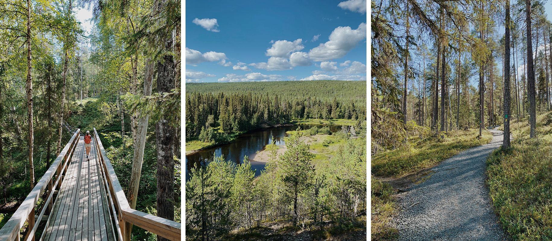 Od enainštiridesetih narodnih parkov, ki se raztezajo po Finski, sva jih obiskala šest. Pičla dva procenta in pol, pa se nama je zdelo, da sva videla neizmerno veliko. Vsak izmed njih je bil nekaj posebnega, povsod sva nabirala borovnice in posnela na stotine fotografij mogočnih finskih gozdov. Težko jih je bilo med tolikimi določiti le nekaj in ko bova šla naslednjič spet, izbira ne bo čisto nič lažja. V prvem na, Torronsuo, sva se ustavila takoj zatem, ko sva zapustila Helsinke. Preostalih pet naju je čakalo potem, ko sva v laponski vasici Kilpisjärvi obrnila nazaj proti jugu.