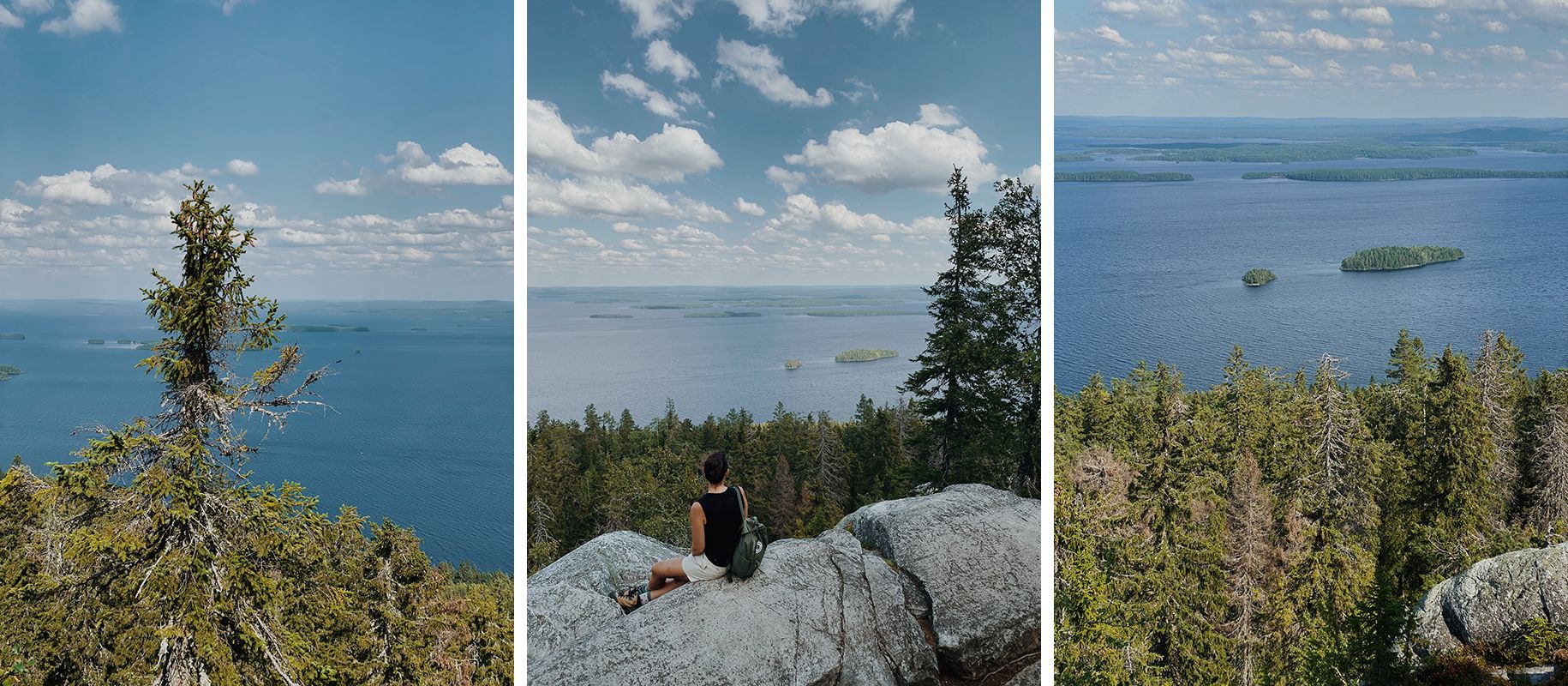 Koli je eden od najbolj obiskanih narodnih parkov na Finskem in če bi že morala delati primerjavo s Slovenijo, bi ga na lestvici najpopularnejših turističnih znamenitosti postavila na podobno mesto kot Bled. To seveda še zdaleč ne pomeni, da je Bled najlepša znamenitost Slovenije in da je Koli, kljub znamenitemu razgledu, najlepši kraj na Finskem. A bila sva tam, na skoraj polnem parkirišču (prvi znak, da to ne bo moj najljubši park) na strmem pobočju gozdnatega hriba in odločila sva se, da mu dava priložnost. Do centra za obiskovalce naju je zapeljala vzpenjača (drugi znak), nato pa sva se po kratki krožni poti sprehodila po velikih okroglih skalah, ki so se raztezale med smrekami. Povzpela sva se na Ukko koli, znameniti vrh z znamenitim razgledom na številne otočke, posejane po jezeru Pielinen, kjer je bilo treba za fotografijo, na kateri ni bilo še deset drugih ljudi, dobesedno stati v vrsti (tretji znak). Razgled je bil sicer krasen, vzdušje pa malo manj. Čez sosednji Akka Koli sva jo zato hitro ucvrla nazaj. S tem sva lepotam parka verjetno naredila veliko krivico, manj obljudeni deli so zagotovo čudovite oaze miru. Le na Bled pač ne bova več šla.