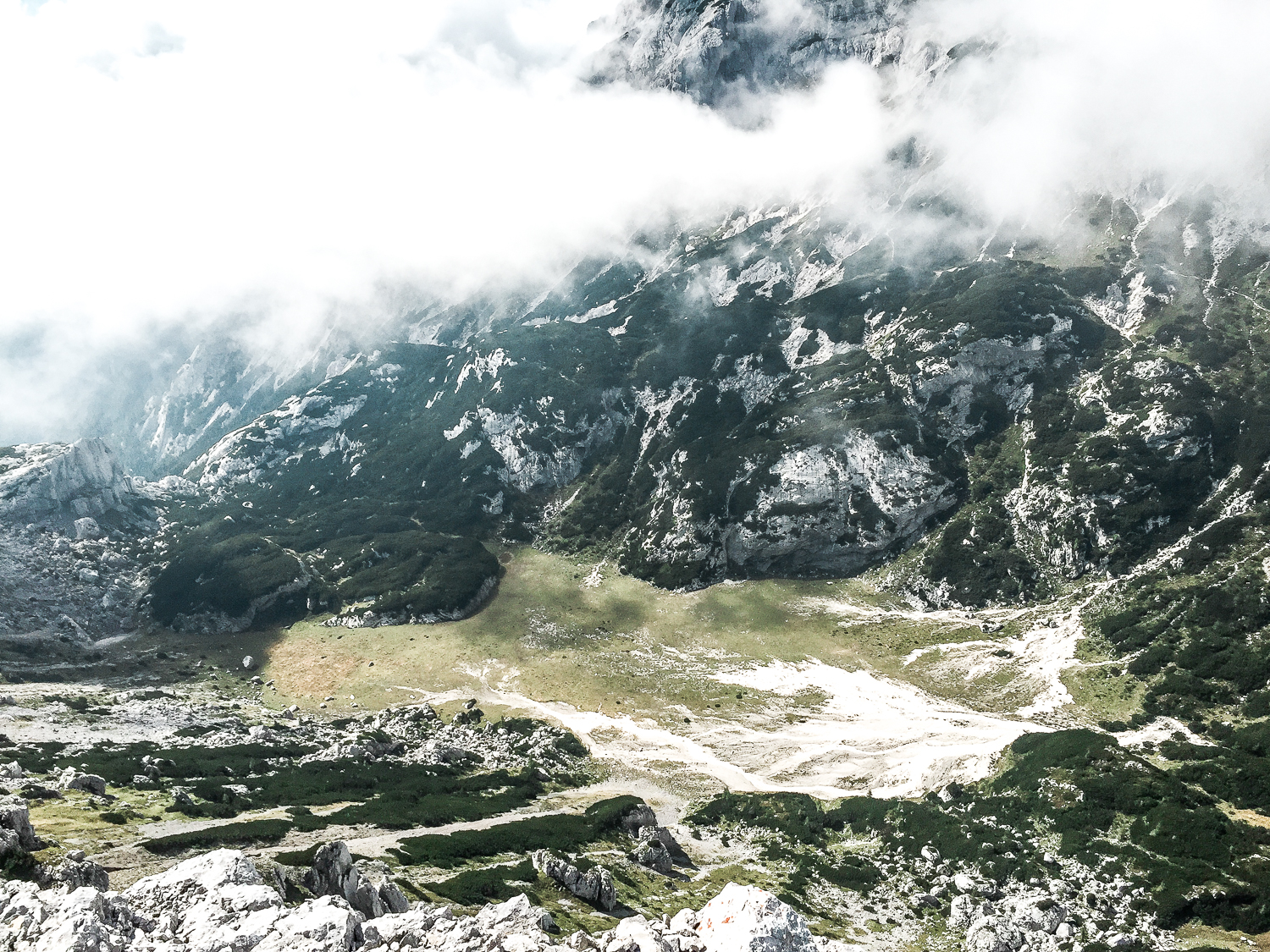 V Kocbekovem domu smo se okrepili z ričetom in se nato skozi ruševje in preko škrapelj povzpeli na Lučkega Dedca. Foto razmere so bile idealne, razgled s prepadnega roba na Korošico, za njo pa Ojstrico, Planjavo, Brano in Veliko planino pa nič manj kot hudo impresiven.