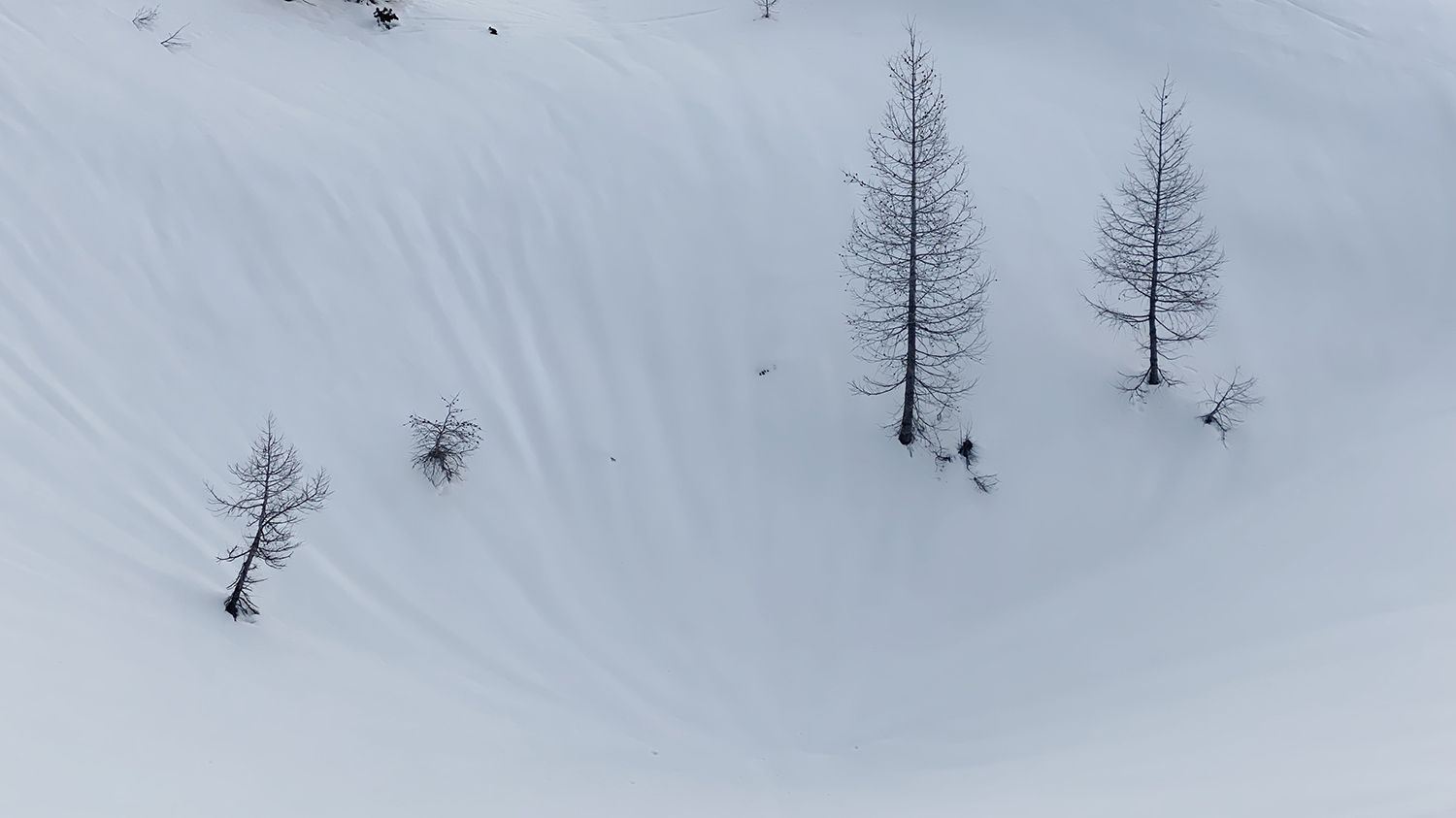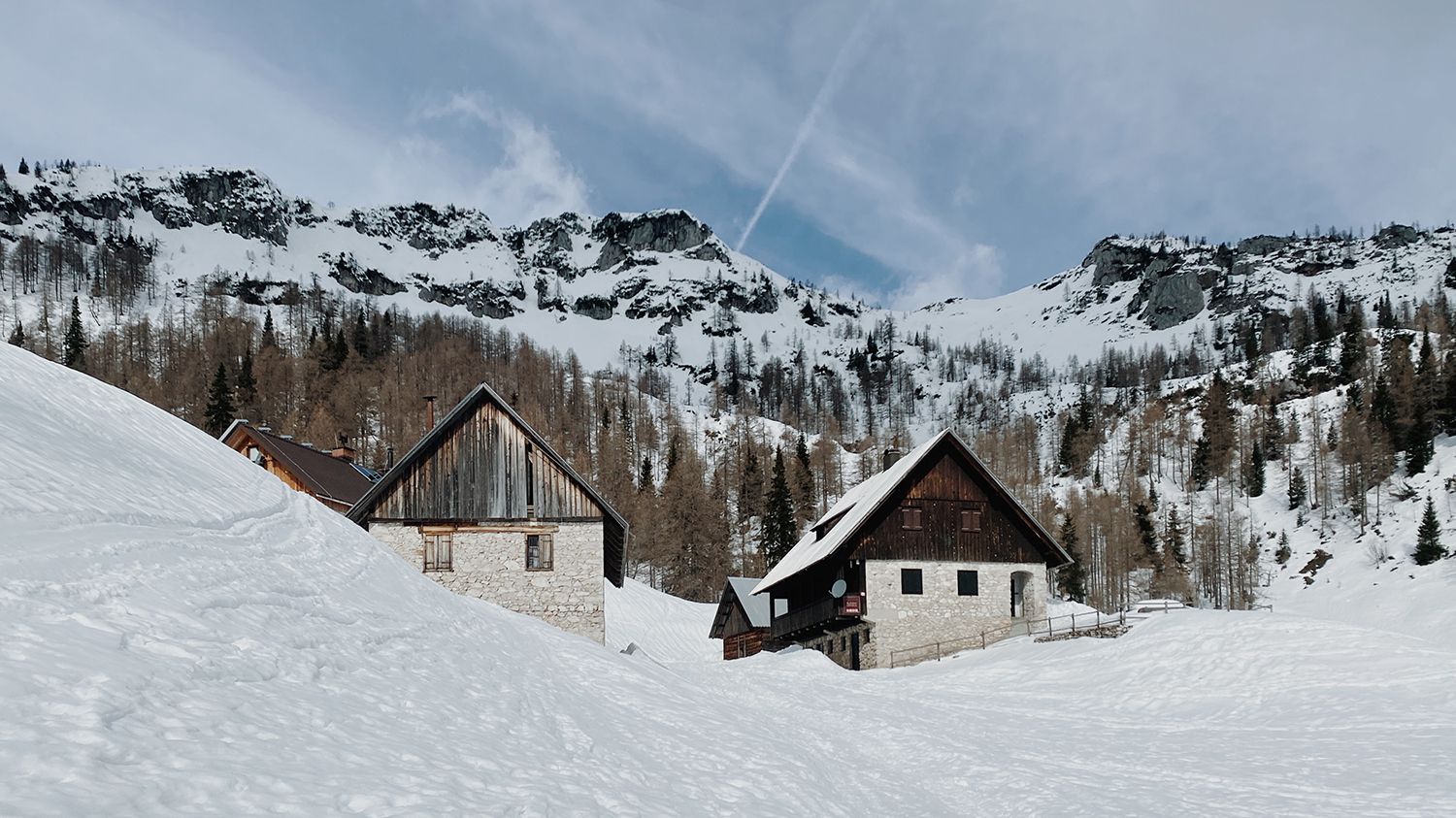 Vzpenjali smo se zlagoma, eden drugega nekajkrat prehiteli, nato pa so se oni na lovu za povezanimi zaplatami snega porazgubili med drevesi, midva pa sva ostala na stezi in po dobri uri hoje dosegla Blejsko kočo na planini Lipanca. Ker si je bilo potrebno nekaj toplega iz planinske kuhinje šele prislužiti, sva kočo obšla, med hojo pomazala vsak svojo energijsko ploščico in nadaljevala vzpon po slabo uhojeni gazi. Sneg je bil z vsakim višinskim metrom globlji, gaz vse manj izrazita in bolj kot dereze bi nama v tistem trenutku prav prišle krplje. Turni smučarji so naju znova dohiteli – izmenjali smo si nekaj vzpodbudnih besed in vremensko prognozo za tisti dan, potem pa so oddrsali mimo, midva pa sva z visoko dvigajočimi koleni spet zagrizla navkreber.