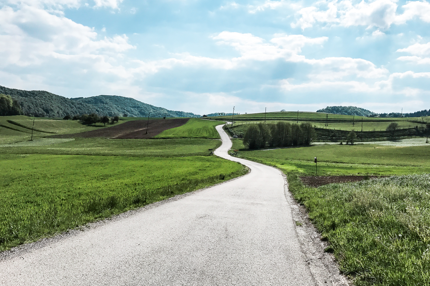 Nekje med Mirno in Boštanjem nama je pot prečkal mlad lisjak, midva pa sva skalila mir vsaj trem čapljam, ki so ždele v travi ob cesti. Malo pred Ivančno Gorico sva prehitela voz z vprego.