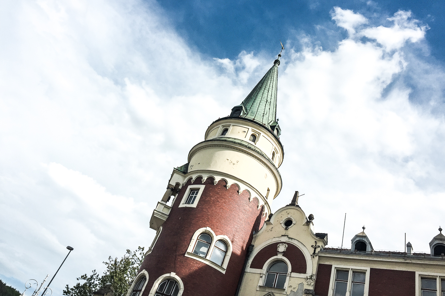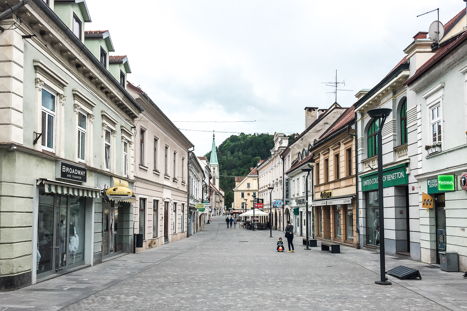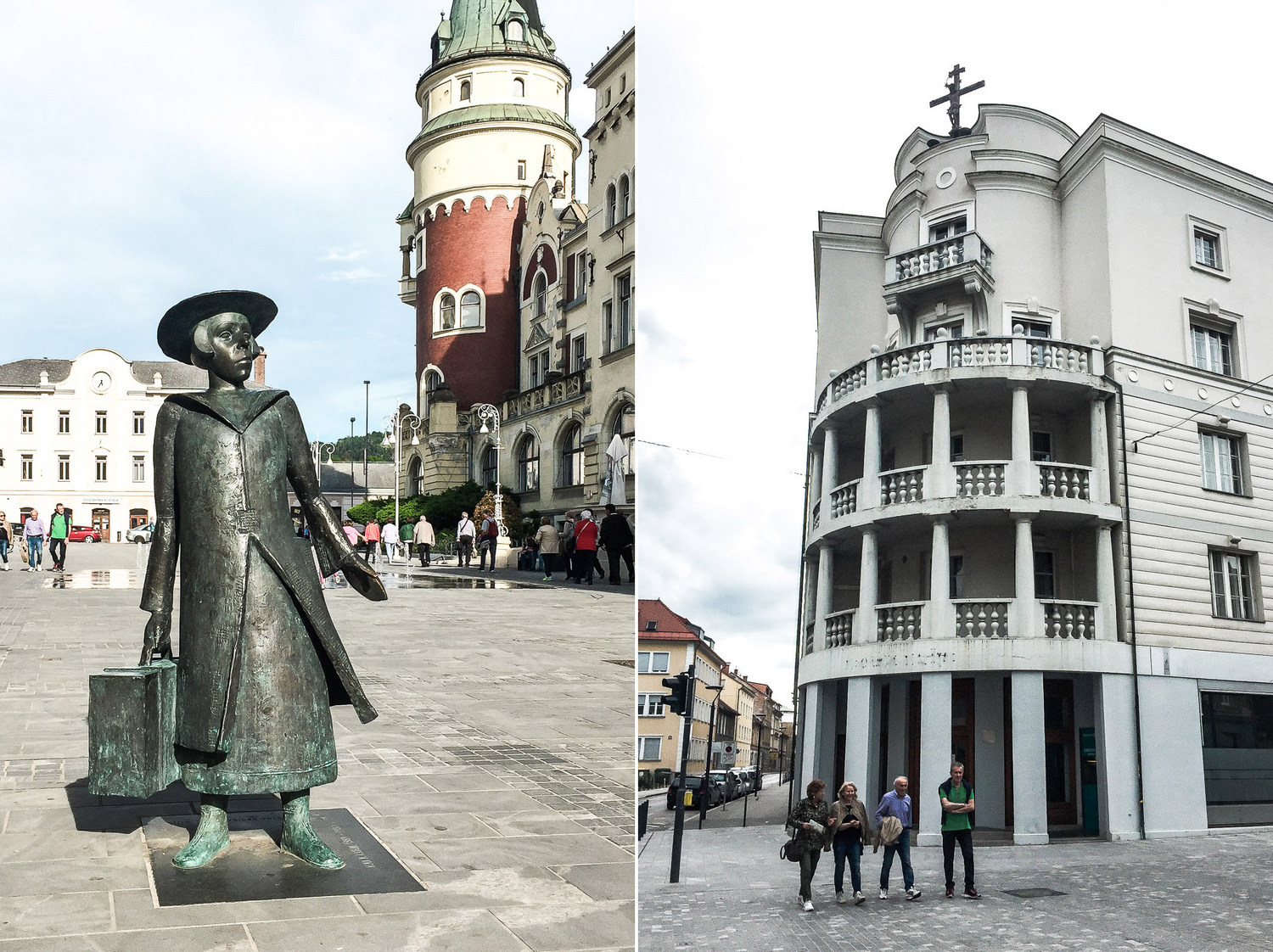 V eni od najlepših stavb v mestu, Plečnikovi Ljudski posojilnici, ki je v slabšem stanju, kot bi človek pričakoval, saj so vse zgradbe v mestu izredno lepe, še deluje kino Metropol, od gostovanja največje celjske banke, ki to ni več, pa so ostale le sledi napisa na pročelju. Na Krekovem trgu, v neposredni bližini železniške postaje, smo naleteli na go. Karlin, ki je ravno prihajala s potovanja.