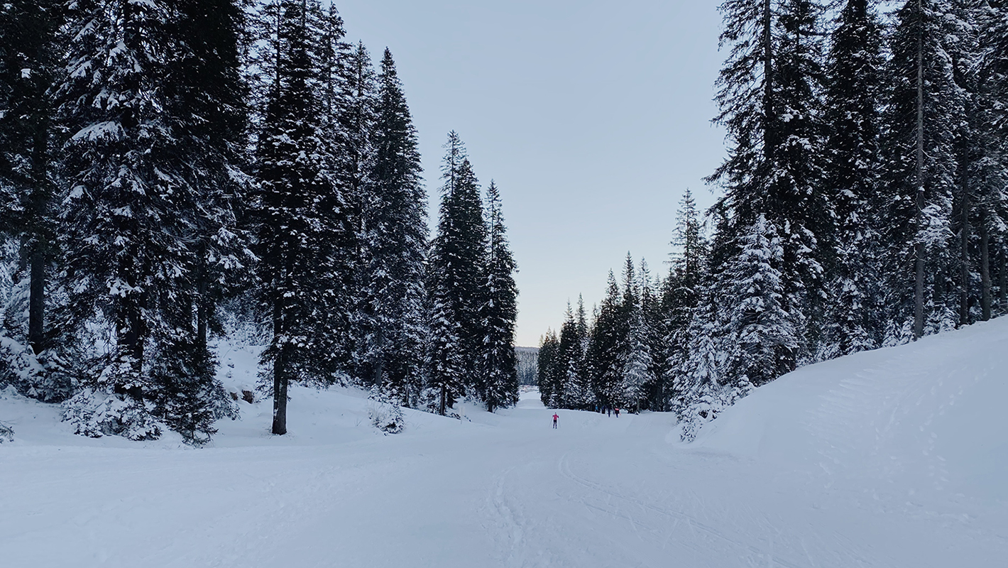 Beli gozdovi so se nadaljevali vse do Gorenjske, pravzaprav je bilo razen neba okrog mene belo vse, tudi ceste. Na Bledu je bilo začuda manj snega kot v Ljubljani, a se je snežna odeja z vsakim ovinkom proti Pokljuki spet odebelila in na Rudnem polju je vladalo pravo zimsko vzdušje. Ker so se dopoldanci že vračali v dolino, parkirnega mesta ni bilo težko najti. Obula sem si gojzarje, smuknila v najdebelejšo puhovko, ki jo premore moja zimska garderoba, si na glavo nataknila volnen trak in v nahrbtnik stlačila termo rokavice, nato pa jo ob tekaški progi, na kateri se je rekreiralo veliko število zimskih tekačev, mahnila v gozd.