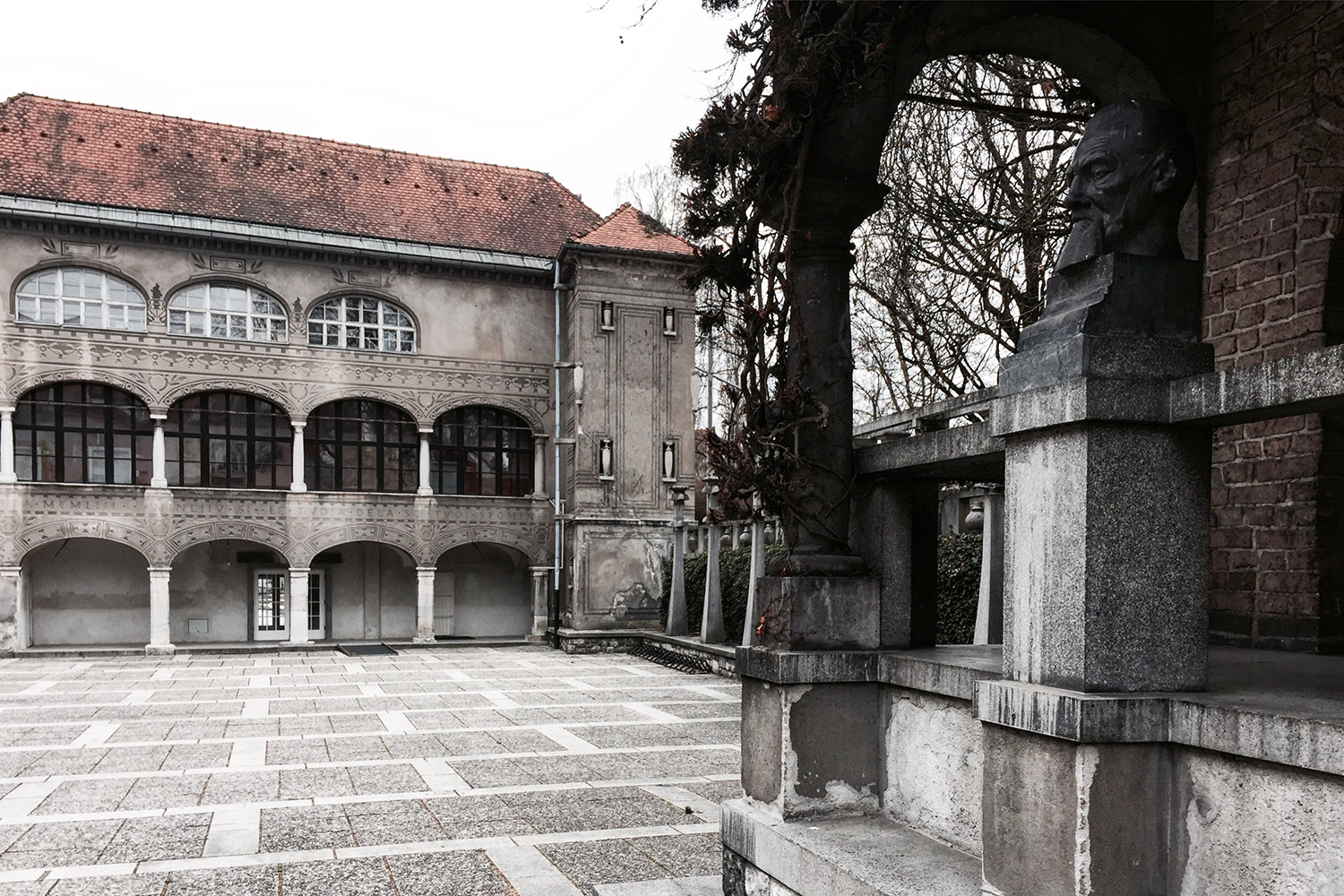 Začeli smo z dejstvi. Vegova ulica poteka na mestu nekdanjega obrambnega jarka srednjeveške Ljubljane, na kar še danes spominja obrambni stolpič, inkorporiran v eno od fasad. Stebri, ki so nekoč podpirali vhodni del Glasbene matice, danes stojijo na Navju, ograjo njenega balkona pa je dal Plečnik ob preureditvi premestiti v stranjsko cerkev. Tu in tam se je že za časa njegovega življenja pojavil tudi kakšen antiplečnikovec. Hernije pred Glasbeno matico, za Miroslava Krležo sporne zaradi namestitve na podstavke, ki naj bi spominjalo na glave, nabite na kole, pripadajo skladateljem, tiste pred NUK-om, postavljene nekoliko kasneje, pa jezikoslovcem. Nadaljevali smo s poezijo oz. Miklavževimi recitali.